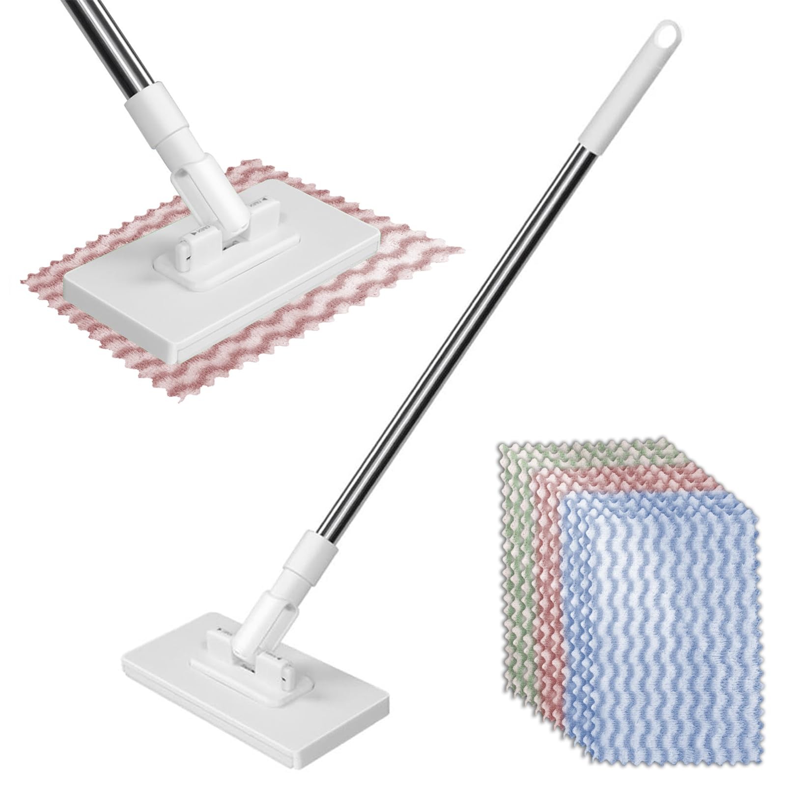 Nikou Balai Serpillère avec Système de Serrage à Pression, Balais Serpillère Nettoyer Sol avec 4 Chiffons, Mini Balai à Plat Rotative à 360°, pour Nettoyer Les Sols, Les Placards et Les Murs