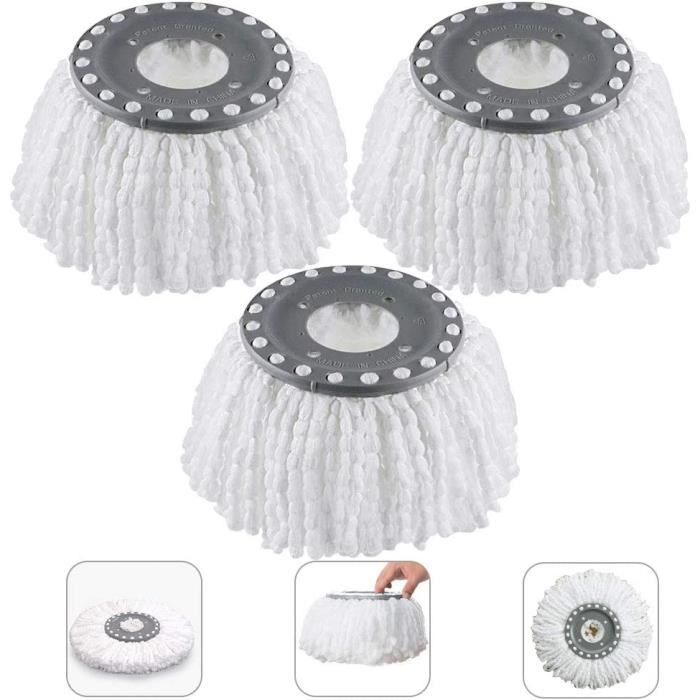 3Pcs Têtes Microfibre Balai Mop HeadsTête de Vadrouille Rechange Rond Têtes Mop Rotation à 360 pour Balais Serpillère Rotatif