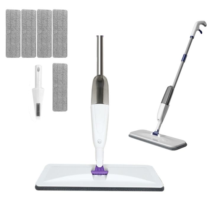 Balai Serpillère Vaporisateur Balais Nettoyer Sol Spray Mop Plat Microfibre Balai avec 5 Tampons Réutilisables et Racloir