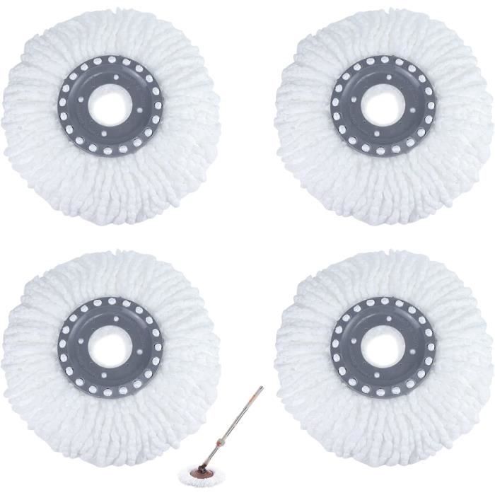 4Pcs Têtes Microfibre Balai Mop Heads Tête de Vadrouille Rechange Rond Têtes Mop Rotation pour Balais Serpillère Rotatif 360°