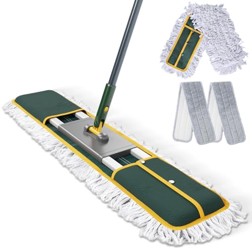 Eukue Balai Serpillère 90cm Grande, Serpillère Professionnel en Microfibre avec 3 Tampons, Balais à Plat Serpillere Coton avec Manche INOX, Balais Nettoyer Sol pour Bureau, Garage, Entrepôt-Vert