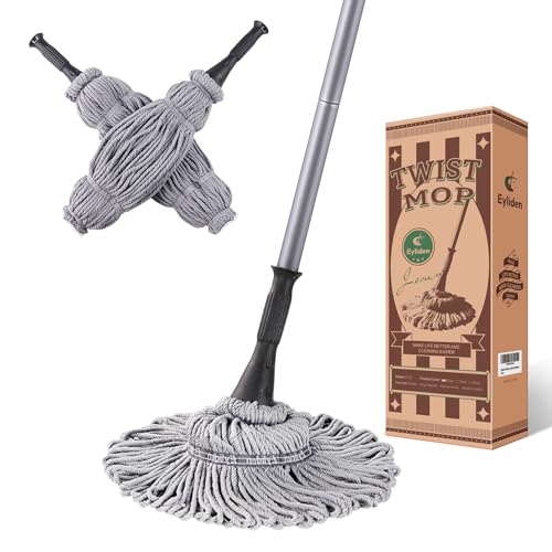 Eyliden Serpillère avec 2 têtes réutilisables, Balai torsadé Facile à essorer, avec Manche de 146,1 cm de Long, balais humides pour Nettoyage du Sol, Nettoyage de la Maison Commerciale, Bois Dur,