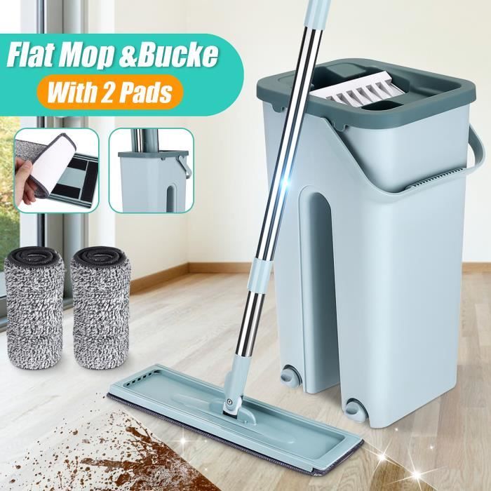 Nettoyage Balai Vadrouille Serpillière Magique avec Seau Essoreur + 2 Chiffons