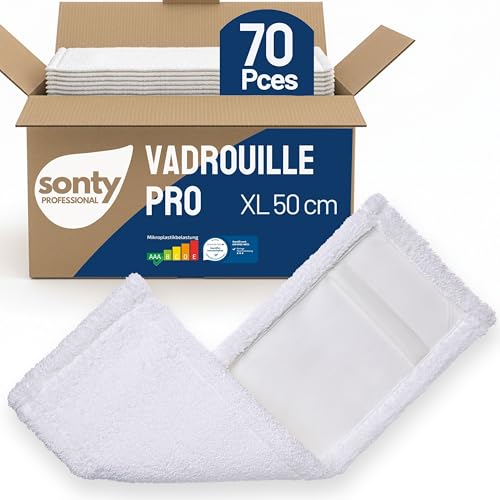 SONTY Housse de serpillière 50 cm Microfibre – Lot de 70 recharges pour Support Pliant | Serpillière Microfibre pour Maison, Restauration & Milieu Professionnel | Lavable 60–95°C
