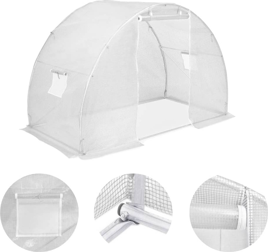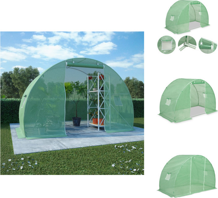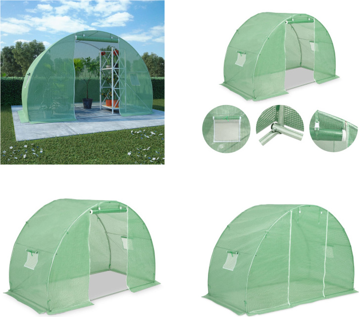 Serre De Jardin Tunnel 5 M² 2,45l X 2l X 1,98h M Acier Renforcé Ø 1,8 Cm + Pe Haute Densité 140 G/M² Fenêtres Porte Déroulante Vert