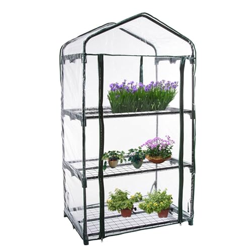 Anjinguang Housse de Rechange en PVC Transparent pour Serre de Jardin à 3 étages, Mini Serre à 3 étages,Transparent avec Porte à Fermeture éclair Enroulable 68,6 x 48,3 x 127 cm (Housse Uniquement)