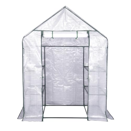 Outsunny Serre de Jardin à 3 étages avec revêtement en polyéthylène renforcé, Porte Enroulable et fenêtres en Maille, 140 x 213 x 190 cm, Blanc
