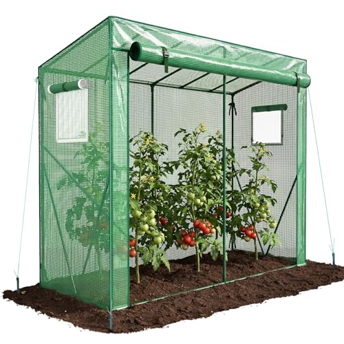 VOUNOT ® Serre de Jardin à Toit Incliné Serre à Tomate avec Grande Porte et 2 Fenêtres pour Légumes Plantes Fleurs Bâche PE Renforcée 135g/m2 Protéger Vos Plantes en Toutes Saisons 200x77x170cm Vert