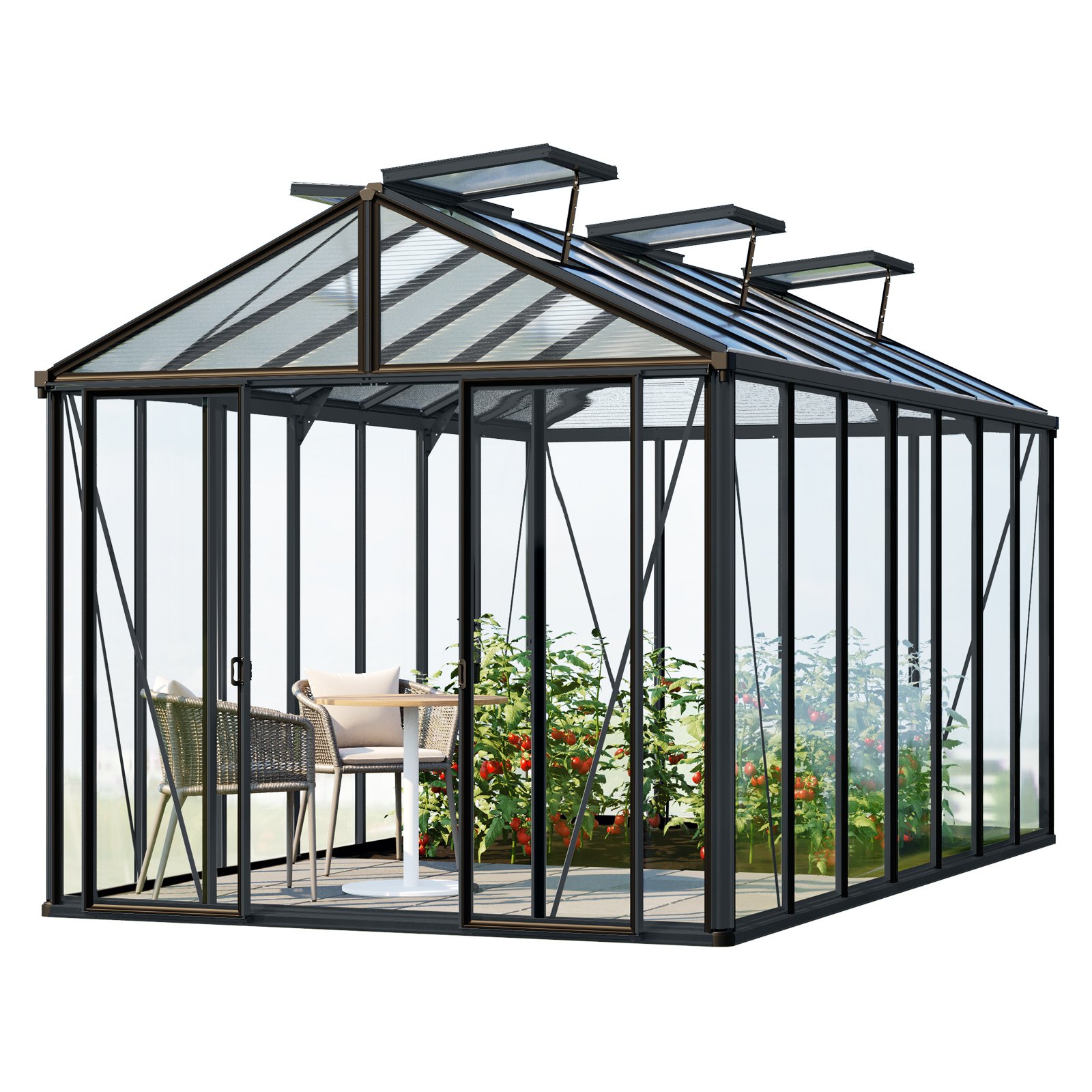 GFP Serre de jardin Hera 3 serre en verre 263x199 cm structure aluminium couleur anthracite avec ouvre-fenêtres auto. et table rabattable