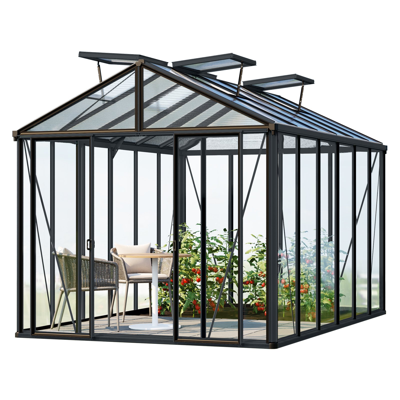 GFP Serre de jardin Hera 4 serre en verre 263x263 cm structure aluminium couleur anthracite avec ouvre-fenêtres auto. et table rabattable