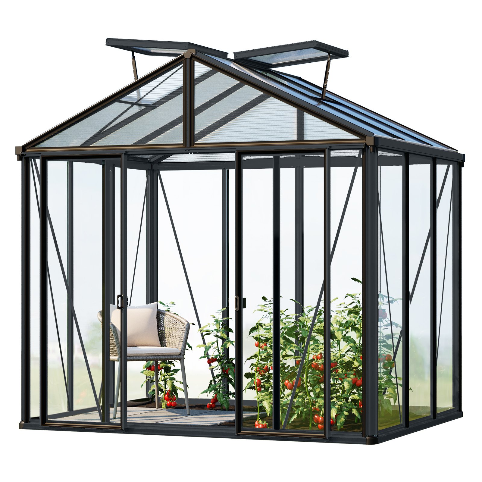 GFP Serre de jardin Hera 2 serre en verre 263x138 cm structure aluminium couleur anthracite avec ouvre-fenêtres auto. et table rabattable