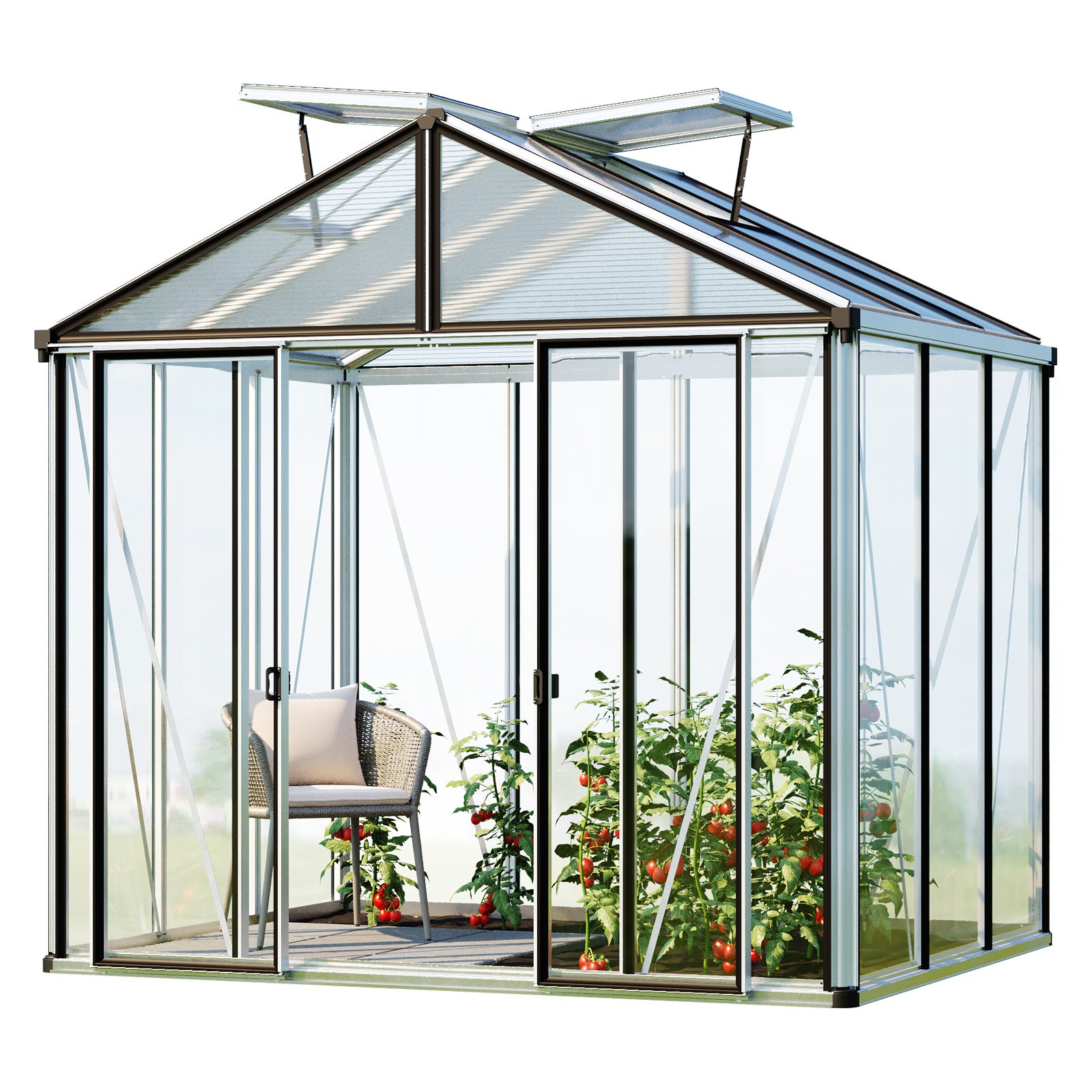 GFP Serre de jardin Hera 4 serre en verre 263x263 cm | structure en aluminium couleur anthracite