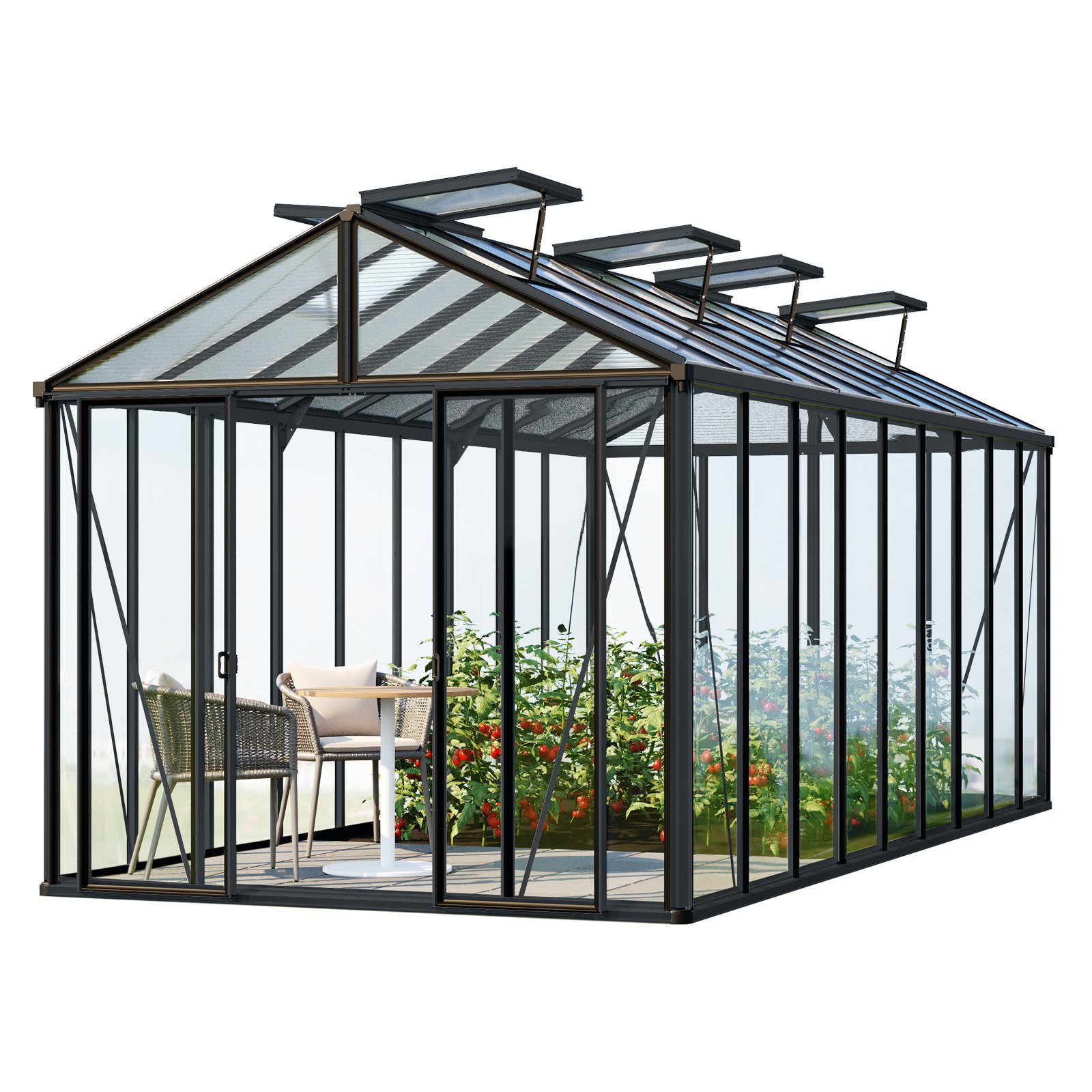 GFP Serre de jardin Hera 8 serre en verre 263x514 cm structure aluminium couleur anthracite avec ouvre-fenêtres auto. et table rabattable