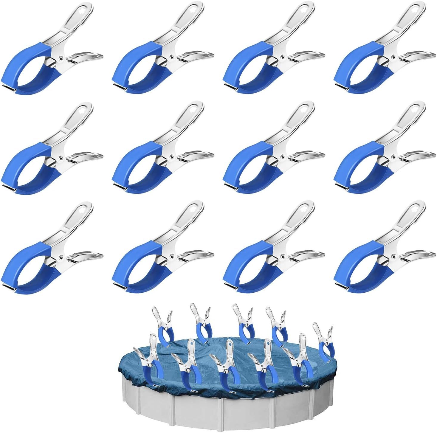 ROSYLEVE 12 Pièces Métalliques pour Pince Serre Joint, Pince Bache Piscine de Fixation avec Feuille de Protection, Pinces pour Piscines Hors Sol, Pinces à Forte Tension pour Bâche de Couverture