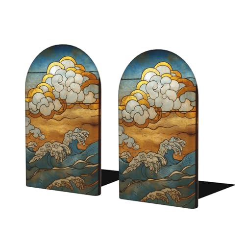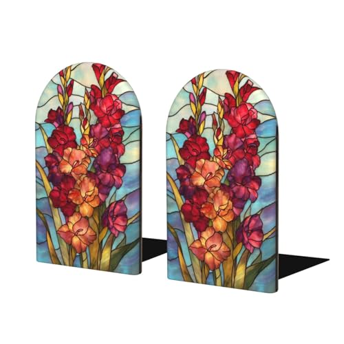 Lot de 2 grands serre-livres en verre vitrail motif floral glaïeul pour étagères, organiseur de livres en bois pour la maison, le bureau, les bibliothèques