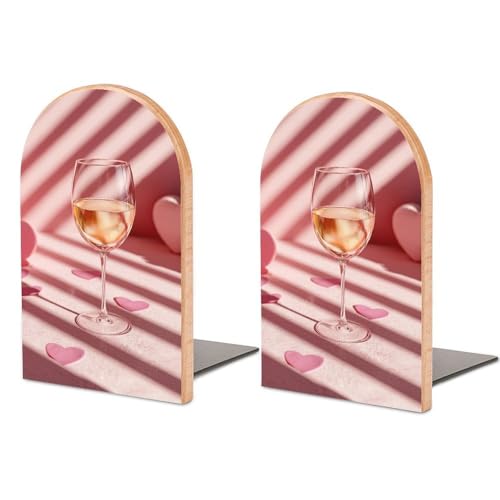Lot de 2 serre-livres en bois léger à rayures en verre de vin pour la maison, le bureau, les bibliothèques