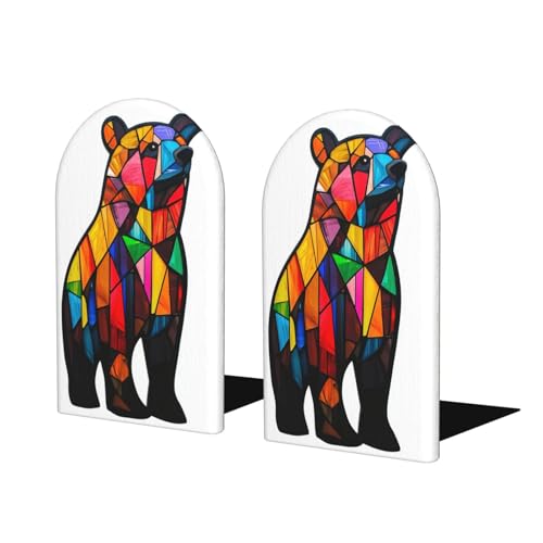 Lot de 2 serre-livres en verre teinté ours colorés pour étagères, organiseur de livres en bois pour la maison, le bureau, les bibliothèques