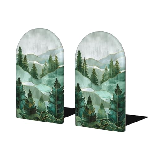 Lot de 2 serre-livres en bois pour étagères en verre teinté avec sapins, sapins, vert sauge, pour la maison, le bureau, les bibliothèques