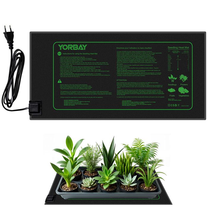 Yorbay Tapis Chauffant Serre Germination Semis Température Coussin Chauffant 21W Plaque Chauffante 52.5 x 25.5 cm étanche IP67
