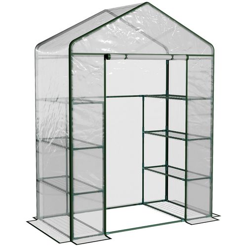 Outsunny Serre de Jardin avec étagères 4 Niveaux, Serre de Balcon, châssis en Acier, Porte zippée Enroulable, pour légumes Plantes Fleurs, intérieur et extérieur, 143 x 73 x 195 cm, Transparent