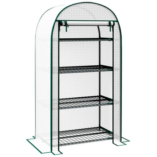 Outsunny Serre de Jardin PE avec étagères 4 Niveaux, Serre de Balcon, bâche renforcée 140 /m², châssis en Acier, Porte zippée Enroulable, pour légumes Plantes, intérieur extérieur, 70x50x160cm, Blanc