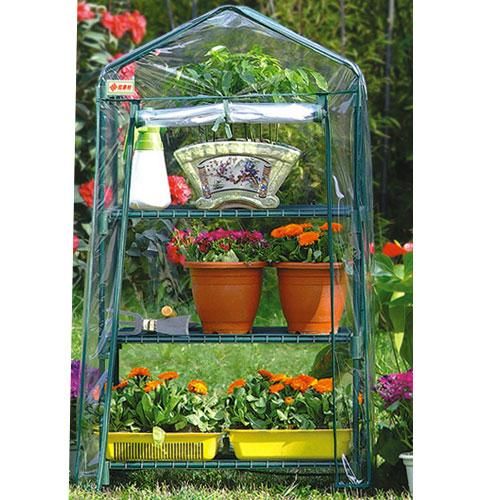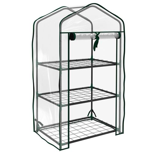Serre de jardin balcon 3 niveaux métal thermolaqué vert PE transparent