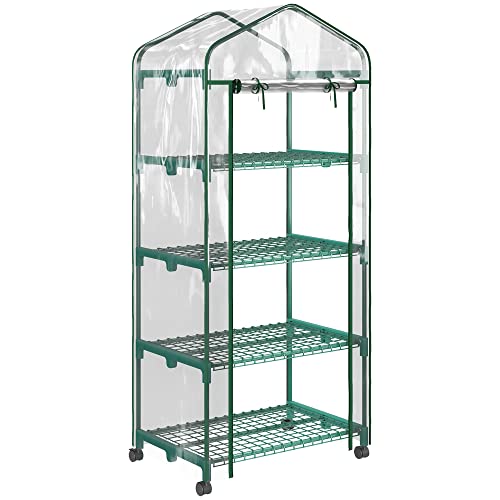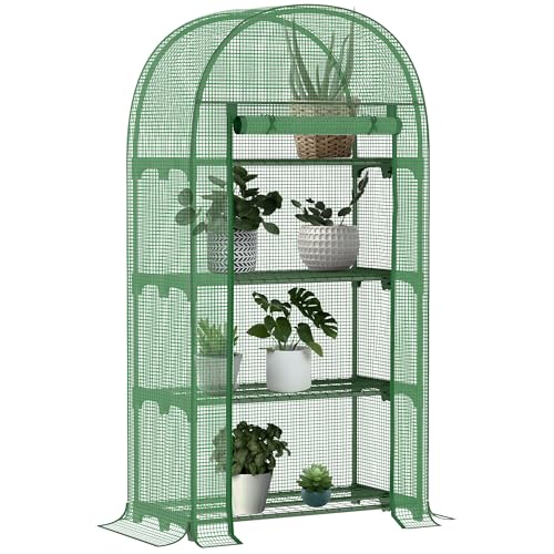 Outsunny Serre de Jardin PE avec étagères 4 Niveaux, Serre de Balcon, bâche renforcée 130 g/m², châssis en Acier, Porte zippée Enroulable, pour légumes Plantes Fleurs, 80 x 49 x 160 cm, Vert