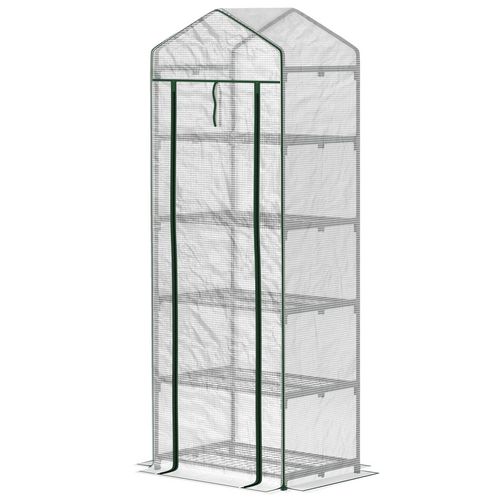 Outsunny Serre de Jardin PE avec étagères 5 Niveaux, Serre de Balcon, bâche renforcée, châssis en Acier, Porte zippée Enroulable, pour légumes Plantes Fleurs, 69 x 49 x 193 cm, Blanc