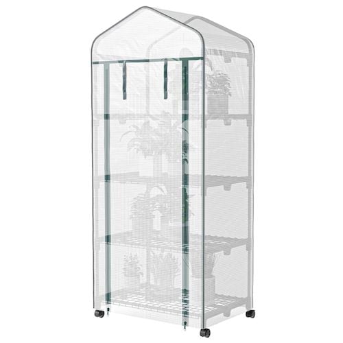 Serre de jardin balcon sur roulettes 4 étagères dim. 0,69L x 0,5l x 1,65H m acier thermolaqué bâche PVC porte zippée transparente