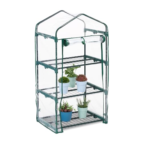 Relaxdays Serre de Balcon, Acier, bâche en PVC, 3 étagères, H x L x P : 122 x 64 x 45 cm, Vert et Transparent
