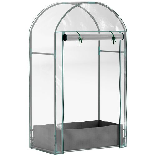 Mini serre de jardin balcon - porte enroulable zippée, sac plantation - 89 x 50 x 152 cm - acier PVC transparent
