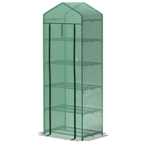 Serre de jardin balcon 5 étagères porte zippée 69 x 49 x 193 cm acier thermolaqué bâche PE vert