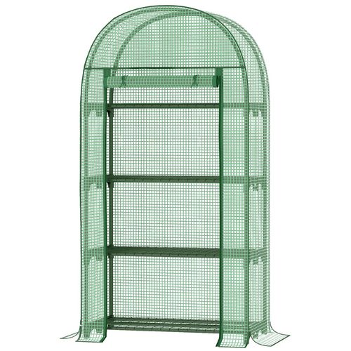 Serre de jardin balcon 4 étagères dim. 69 x 50 x 165 cm acier époxy bâche PE zippée haute densité vert