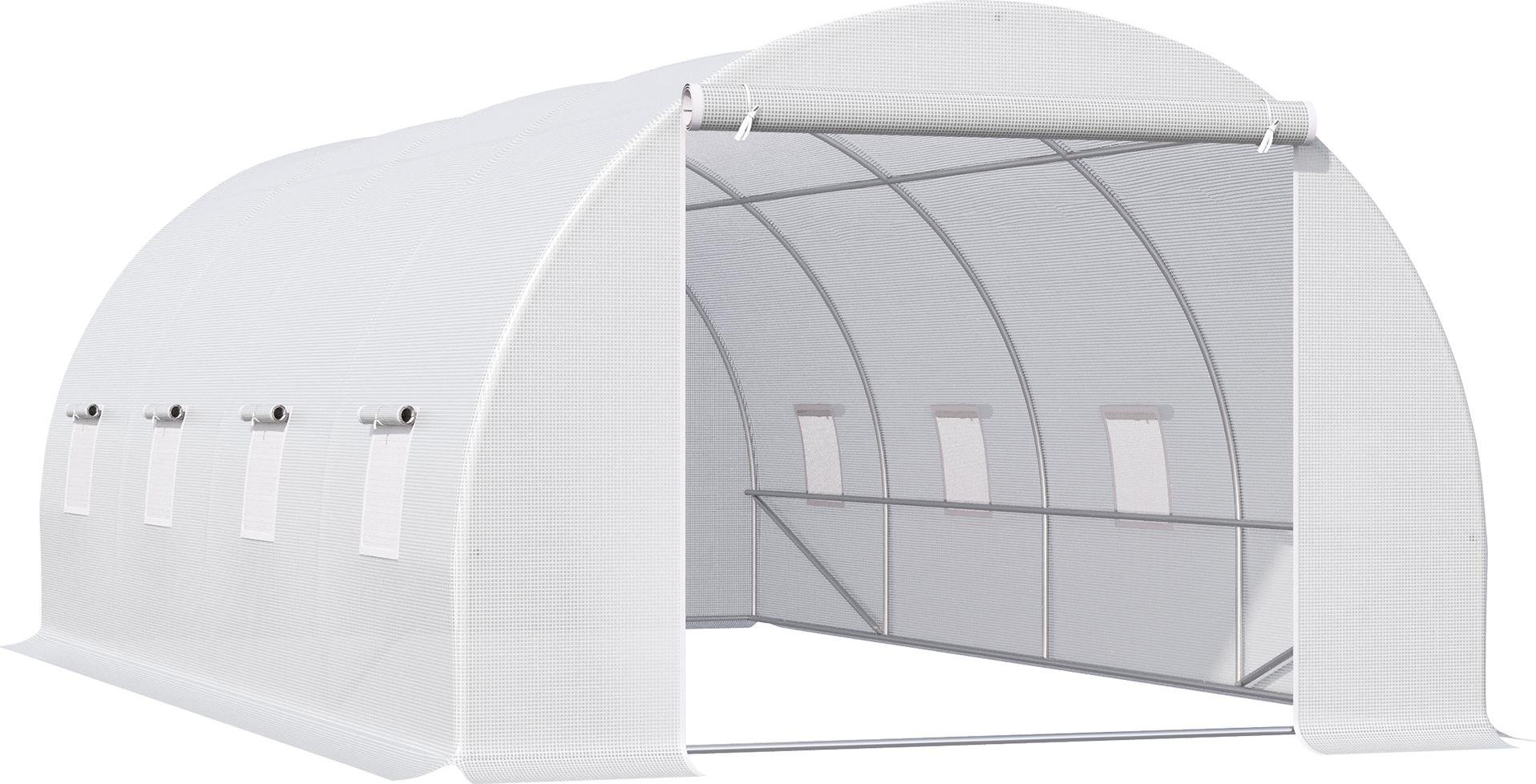 Serre de jardin tunnel surface sol 8 m² 4 x 2 x 2 m châssis tubulaire renforcé 18 mm 6 fenêtres vert