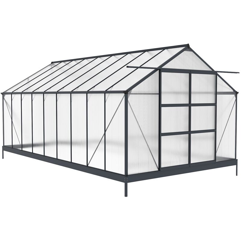 Serre de Jardin en polycarbonate de 16,9 m² avec embase - Anthracite - IXORA