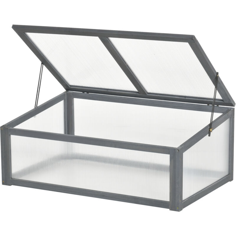 Outsunny Mini Serre de Jardin en Polycarbonate Cadre en Bois 3 Niveaux dim. 70L x 42l x 132H cm Double Porte aération réglables - Gris
