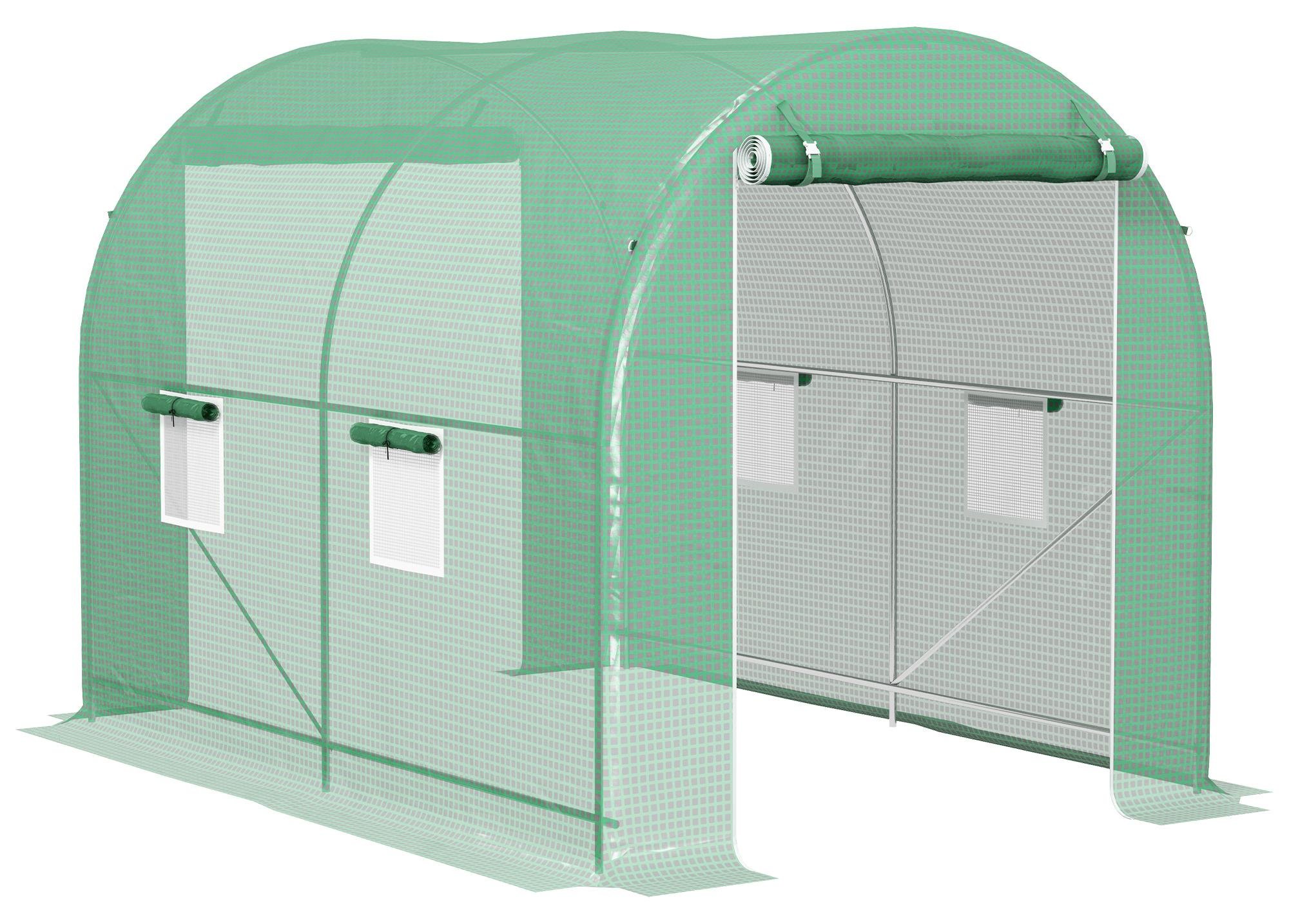Serre de Jardin Tunnel 6 m2 avec systme d'arrosage intgr, 3L x 2l m 6 fenºtres Porte enroulable Vert