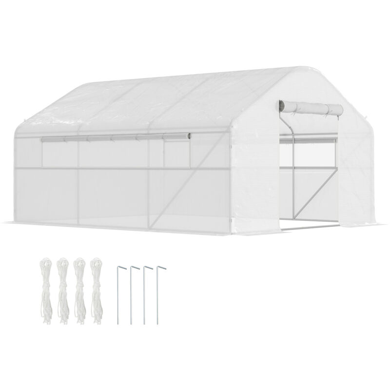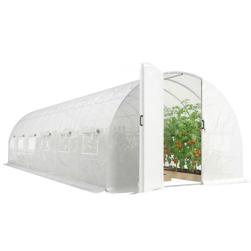 Serre tunnel de jardin - Outsunny - 24m² - avec cadre en acier galvanisé, portes et 2 grandes fenêtres - bâche PE 140 g/m² - blanc