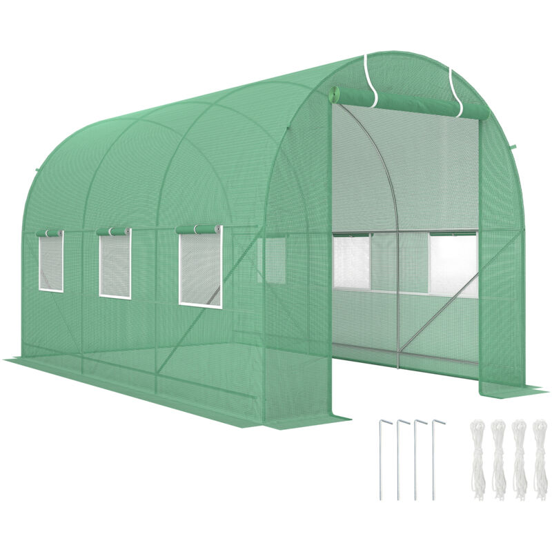 Outsunny - Serre de jardin tunnel 10,4 m² - 6 fenêtres et porte zippée avec moustiquaires - acier galvanisé pe vert