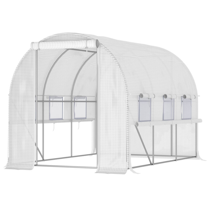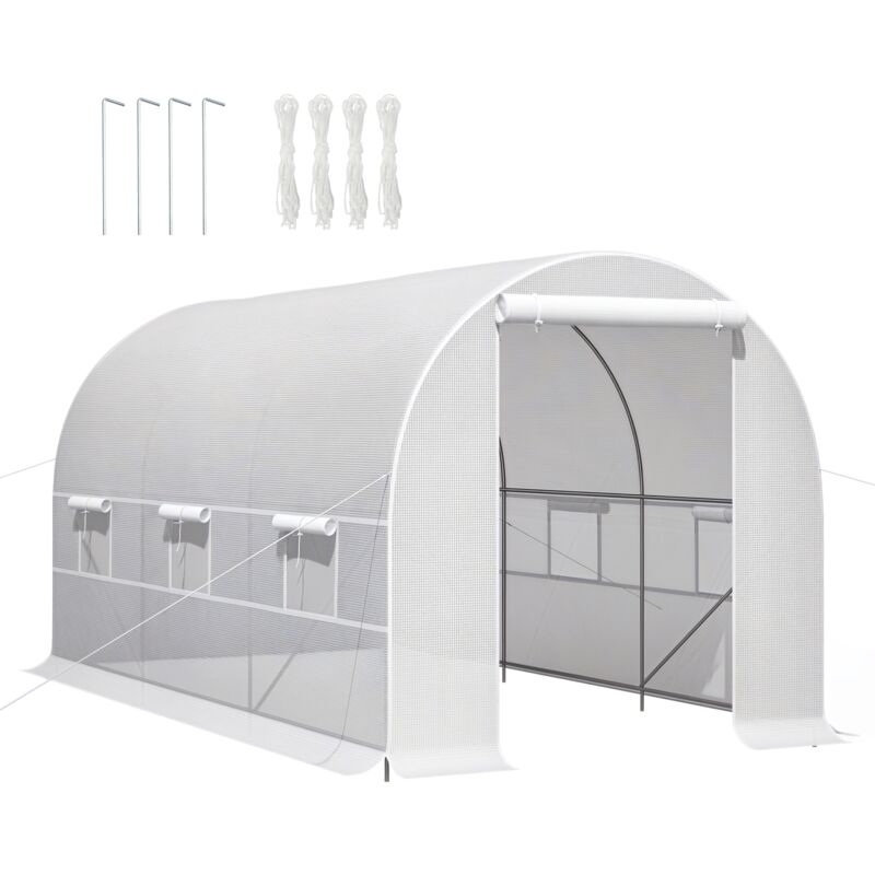 Outsunny Serre pour Potager avec 8 Fenêtres et Porte Enroulable, Serre de Jardin en Tunnel, Serre pour Plantes avec Structure en Métal et Toile en Polyéthylène, 5x2x2m, Blanc