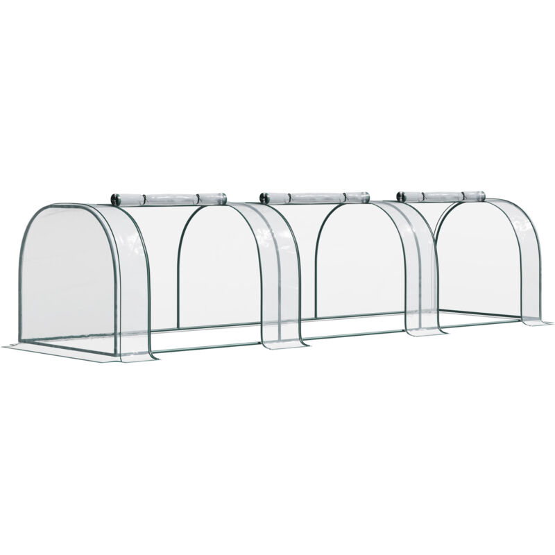 Outsunny Mini Serre de Jardin Mini Serre Tunnel Serre à tomates 3L x 1l x 0,8H m Acier PVC Haute densité Anti-UV 3 fenêtres avec Zip enroulables Vert et Transparent