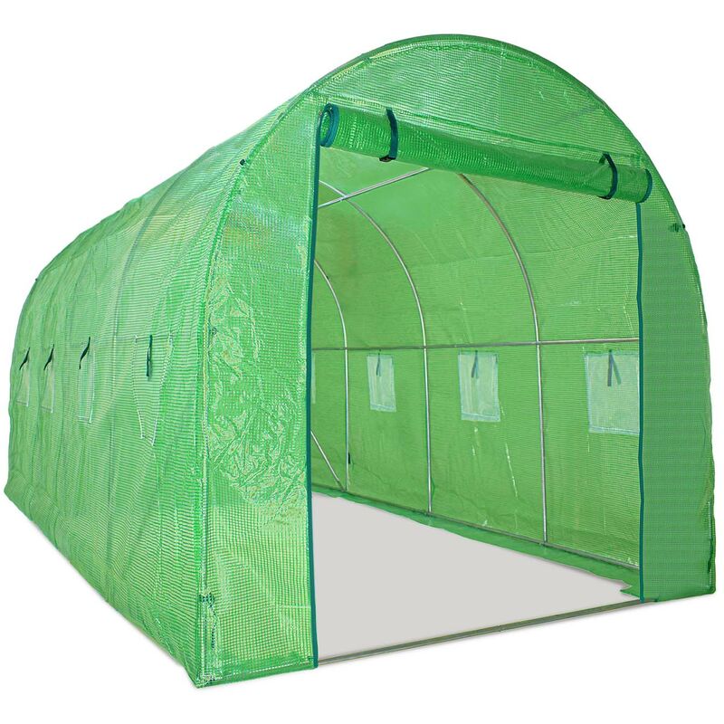 Serre Tunnel de Jardin 18 m² avec 8 Fenêtres et Porte Zippée - Structure Acier Galvanisé, Bâche PE Résistante