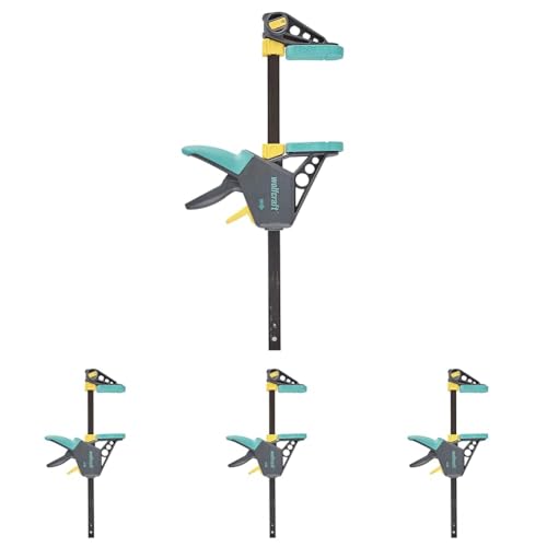 wolfcraft 3023000 - Serre-Joint à une main EASY 75-500 - Saillie 75 mm - Ouverture 500 mm - Force de Serrage Max. 90 kg (Lot de 4)