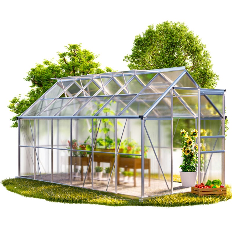 Serre de jardin polycarbonate 192x256 cm – Cadre aluminium – Panneaux double paroi 8 mm résistants aux intempéries – Ventilation optimale