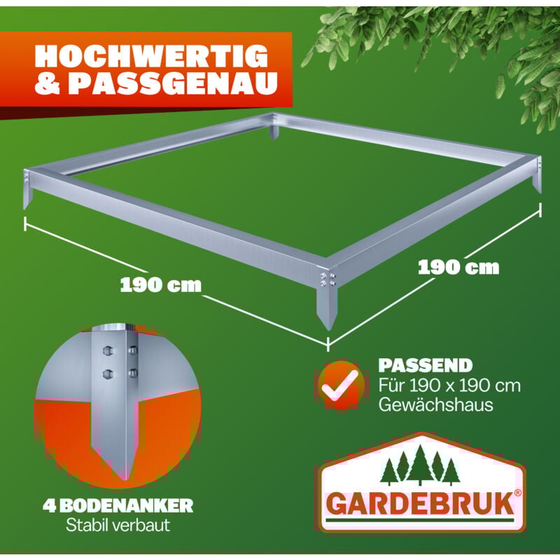 Gardebruk - Fondation serre de jardin acier galvanisé cadre en acier matériel de montage fixation sol embase serre aluminium polycarbonate 190x190cm