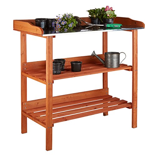 Relaxdays Table de préparation pour semis en bois avec plan de travail en métal 3 étages potager serre HxlxP: 87,5 x 91,8 x 41,5 cm, orange