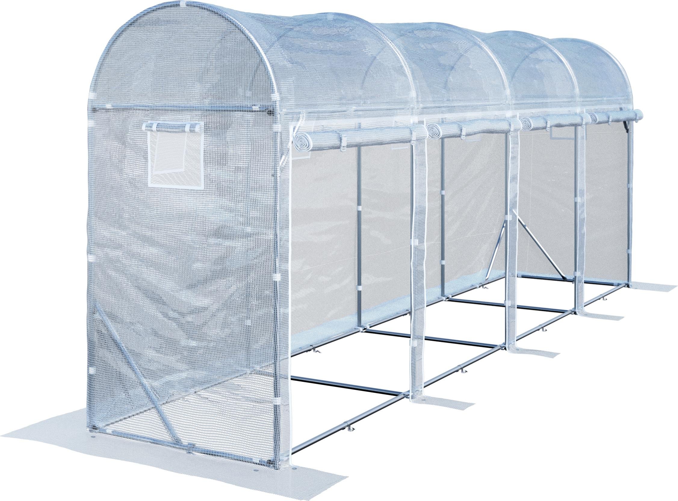 Outsunny Mini Serre de Jardin Mini Serre Tunnel Serre à tomates 3,95L x 1l x 0,8H m Acier PVC Haute densité Anti-UV 4 fenêtres avec Zip enroulables Vert et Transparent