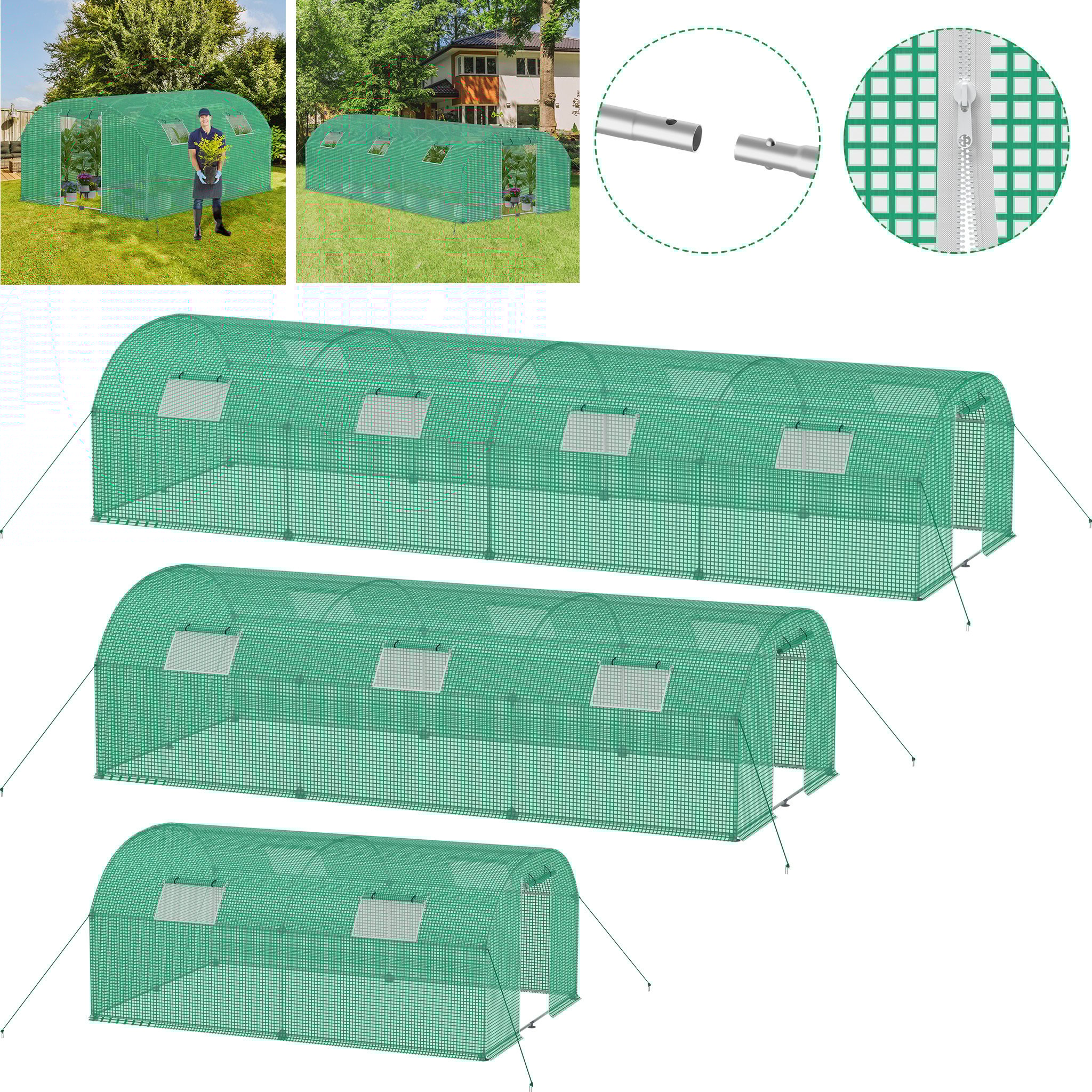 YUENFONG Serre en film plastique 4.5x2x2m pour tomates, avec film grillagé et fenêtre à distance, tunnel en plastique résistant à l'hiver, maison de plantes, vert