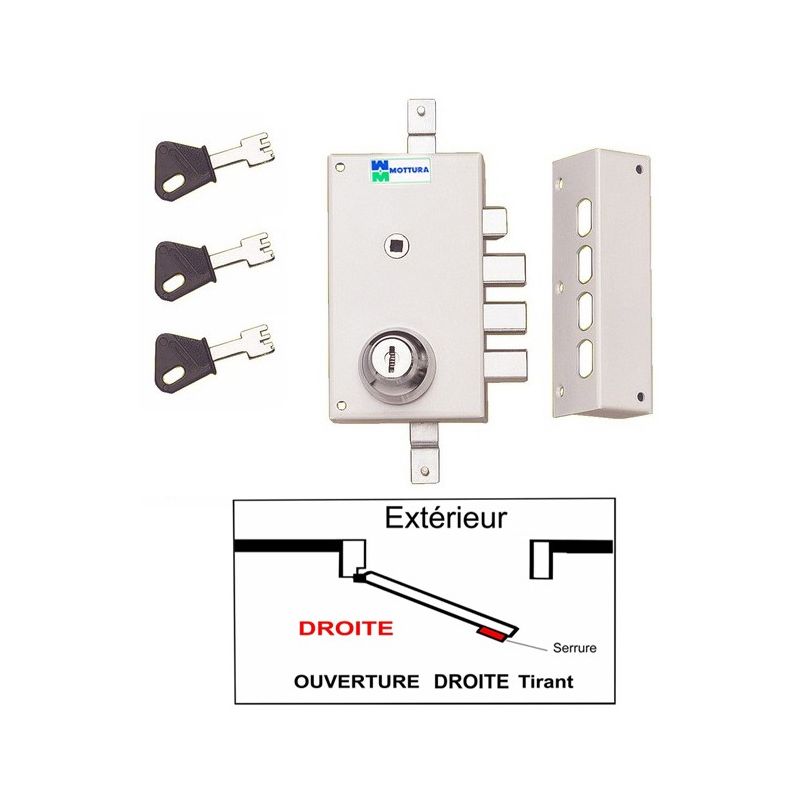 Serrure en applique 3 points - à tirage - main droite - Horga FTH THIRARD