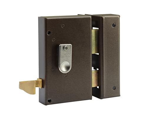 Vachette Serrure en Applique Verticale à tirage Droite, Porte d'Entrée, Porte intérieure - 67285/SC D - Cor de Chasse, Sûreté à Gorge, Axe à 44 mm, Utilisation intérieure, 2 Clés fournies, Marron